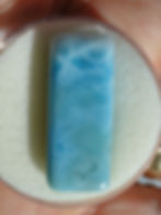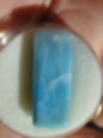 This page will be filled with beautiful Larimar cabs. Larimar is found in only one location worldwide, the Dominican Republic. It is a rare blue variety of the silicate mineral pectolite. Its stunning patterns combined with wide range of blue colors makes this stone very desirable. Whether it reminds you of the ocean or the sky, its just gorgeous. Definitely one of my favorite materials although it can be difficult to cab.